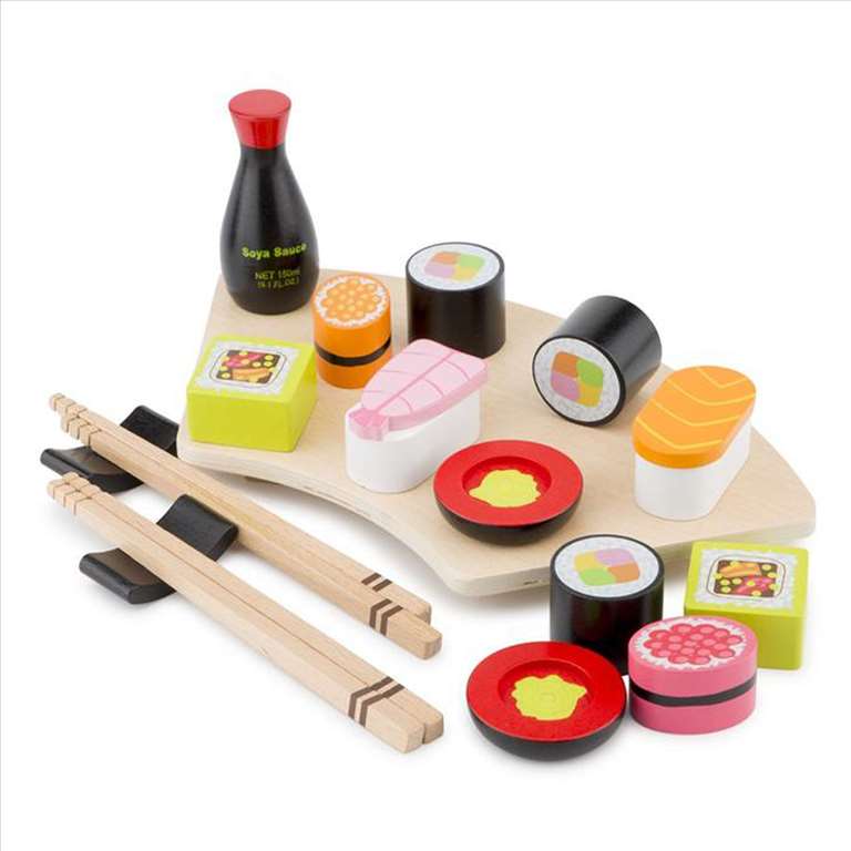 Με το ξύλινο σετ σούσι της New Classic Toys μπορείς να αναδείξεις τα διάφορα είδη κουζίνας που υπάρχουν στο παιδί και ταυτόχρονα να του δώσεις το ερέθισμα να δημιουργήσει τα δικά του πιάτα, τονώνοντας την φαντασία του.