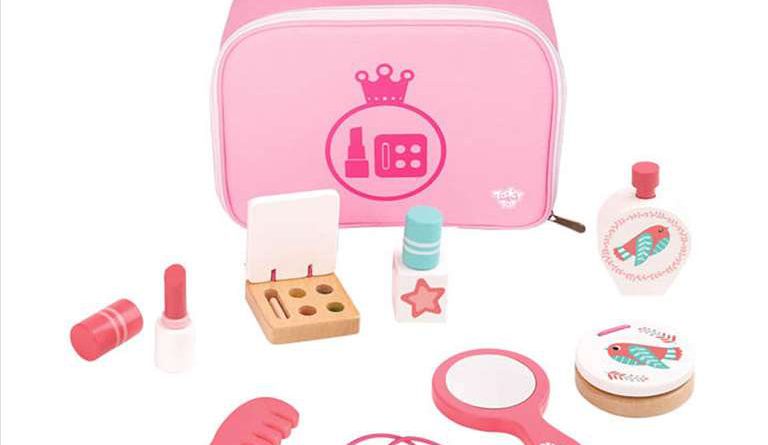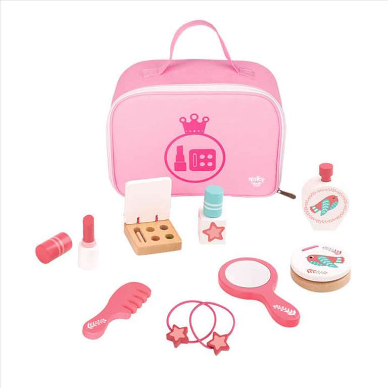 Αυτό το ξύλινο σετ βαλιτσάκι ομορφιάς αποτελεί κλασικό και διαχρονικό παιχνίδι μίμησης ρόλων που ενθαρρύνει τις κοινωνικές δεξιότητες του παιδιού και καλλιεργεί τη φαντασία του. Αποτελείται από κοριτσίστικα αξεσουάρ περιποίησης όπως χτένα, κραγιόν, καθρέπτης κ.α.