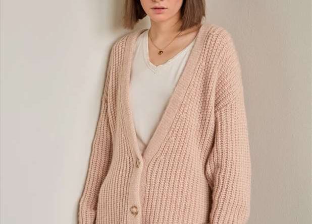 Μακριά πλεκτή ζακέτα σε ροζ χρώμα από την Yerse.