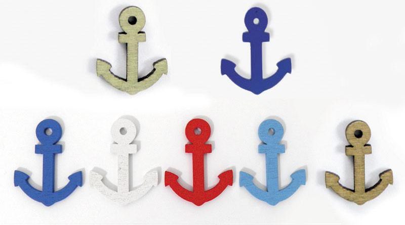 Ξύλινη Διακοσμητική άγκυρα για διακόσμηση μπομπονιέρας ή μαρτυρικών και για διάφορες κατασκευές. Διαστάσεις 2 x 2.5 cm. Ελάχιστη παραγγελία 100 τεμάχια.