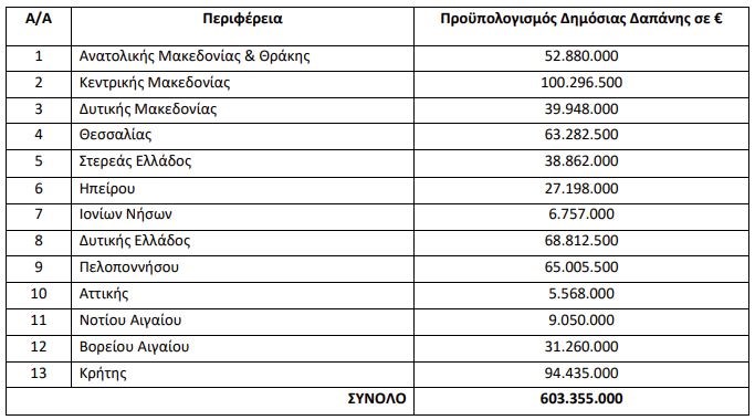 Για την εφαρμογή της νέας τροποποιητικής απόφασης κατανέμονται σε βάρος του υπομέτρου 6.1 «Εγκατάσταση Νέων Γεωργών», του ΠΑΑ 2014–2020 τα ποσά ανά περιφέρεια που φαίνονται στον πίνακα που ακολουθεί.