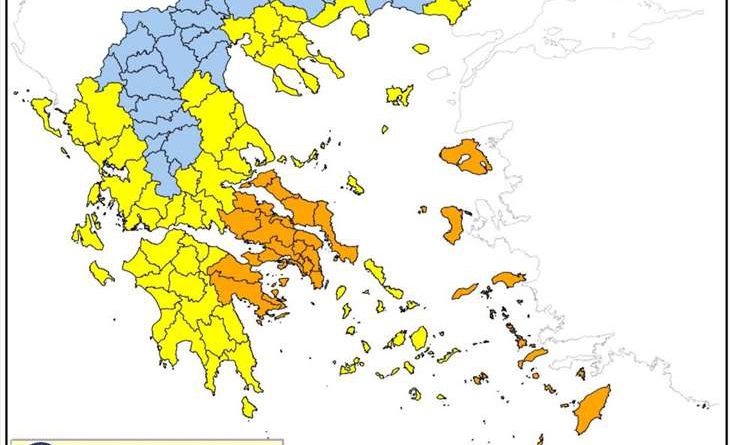 Συγκεκριμένα, σύμφωνα με την πολιτική προστασία, για σήμερα Παρασκευή 28 Ιουλίου 2023, προβλέπεται πολύ υψηλός κίνδυνος πυρκαγιάς (κατηγορία κινδύνου 4) για τις εξής περιοχές: