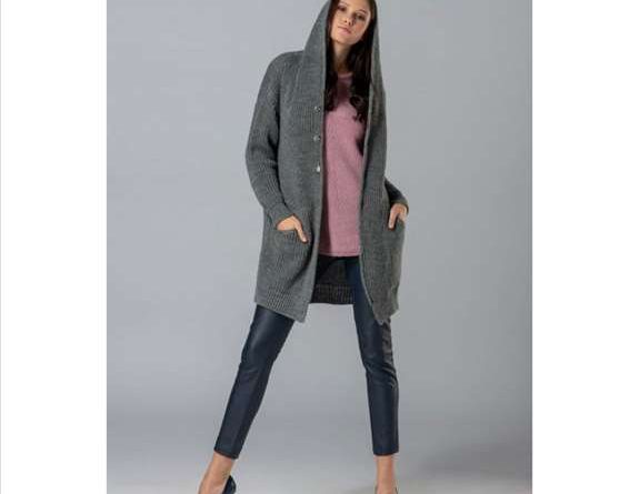 Ζακέτα πλεκτή ελληνικής ραφής με κουκούλα και τσέπες γκρι