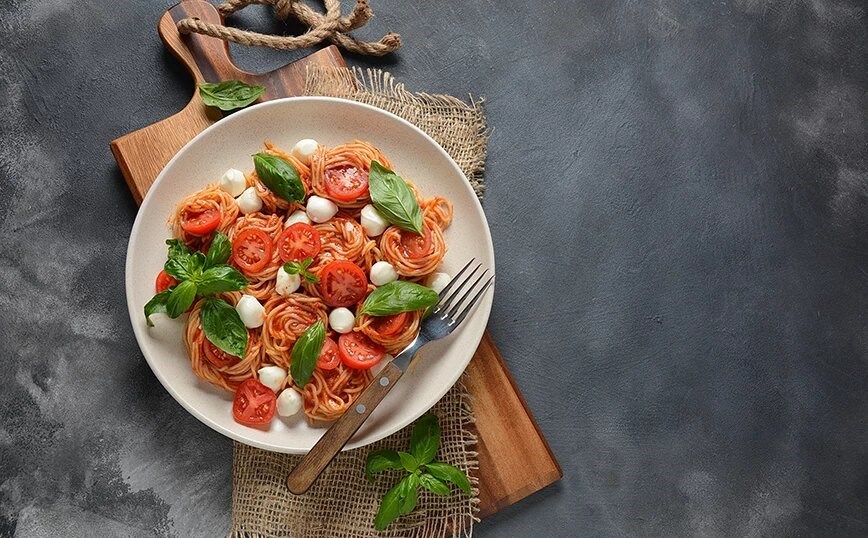 Ζυμαρικά με ντοματίνια και βασιλικό